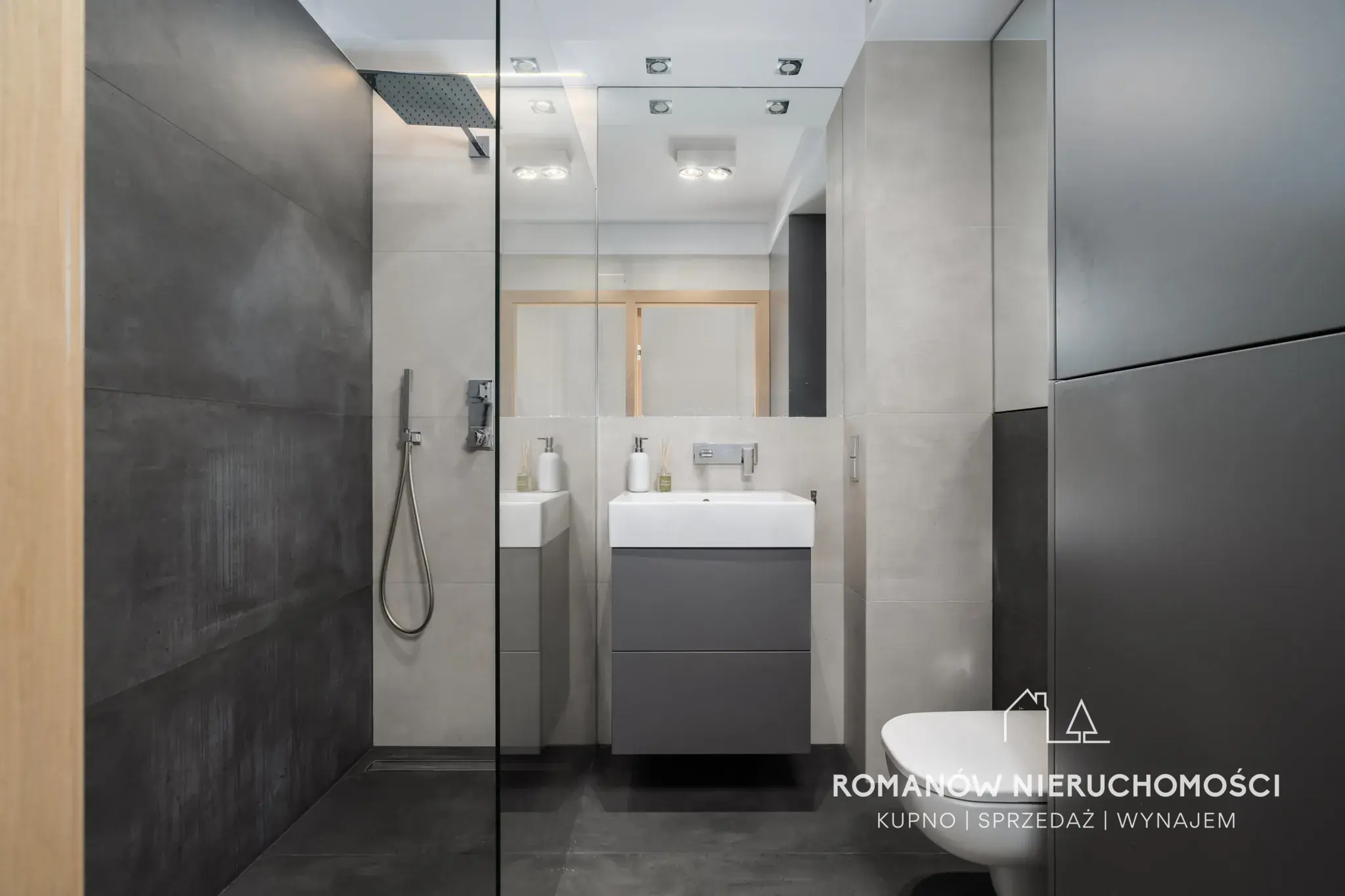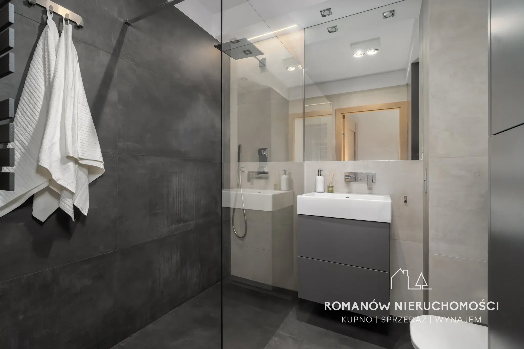 - łazienka z prysznicem typu walk-in 4,35 m² (szafki na wymiar w zabudowie, pralkosuszarka)