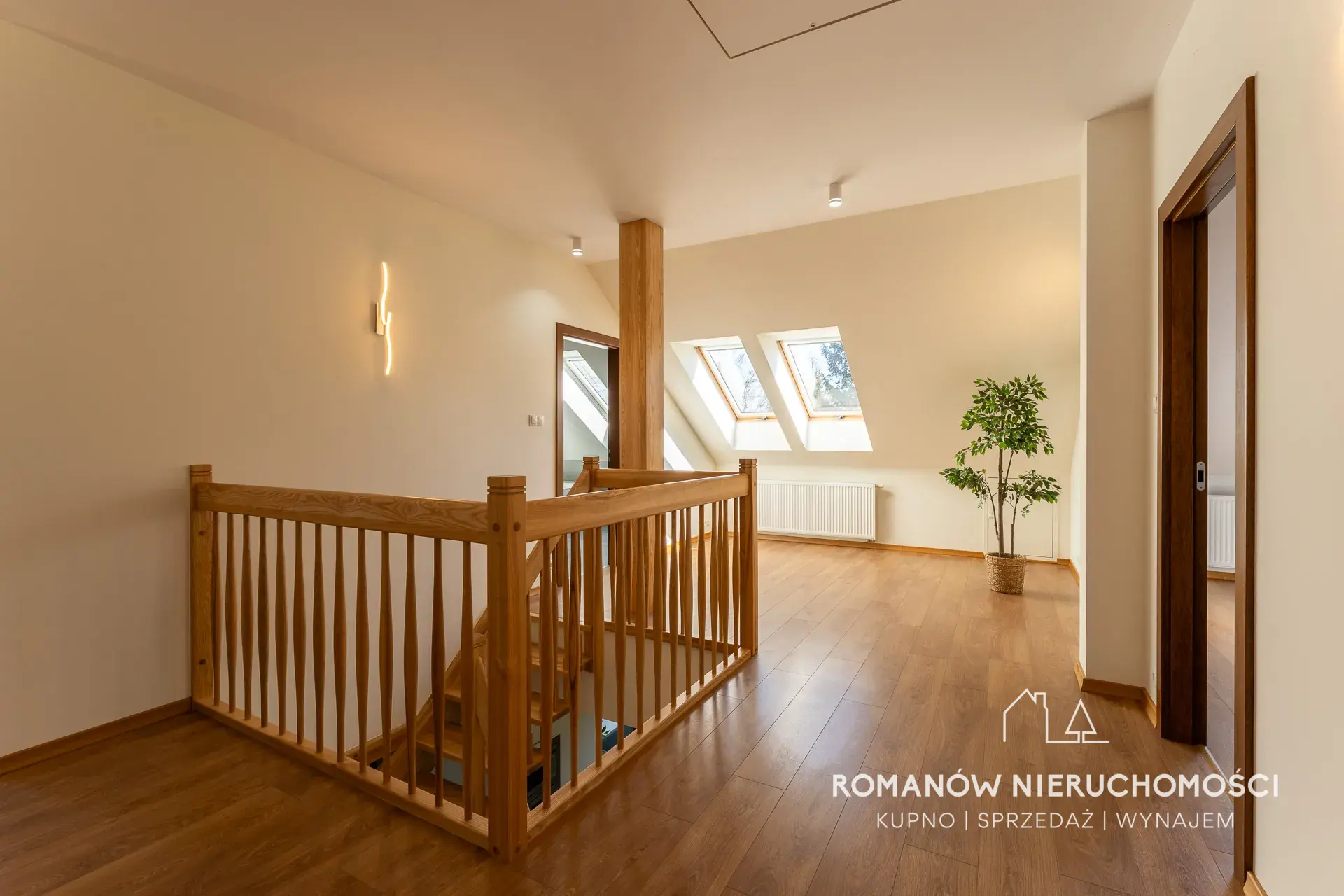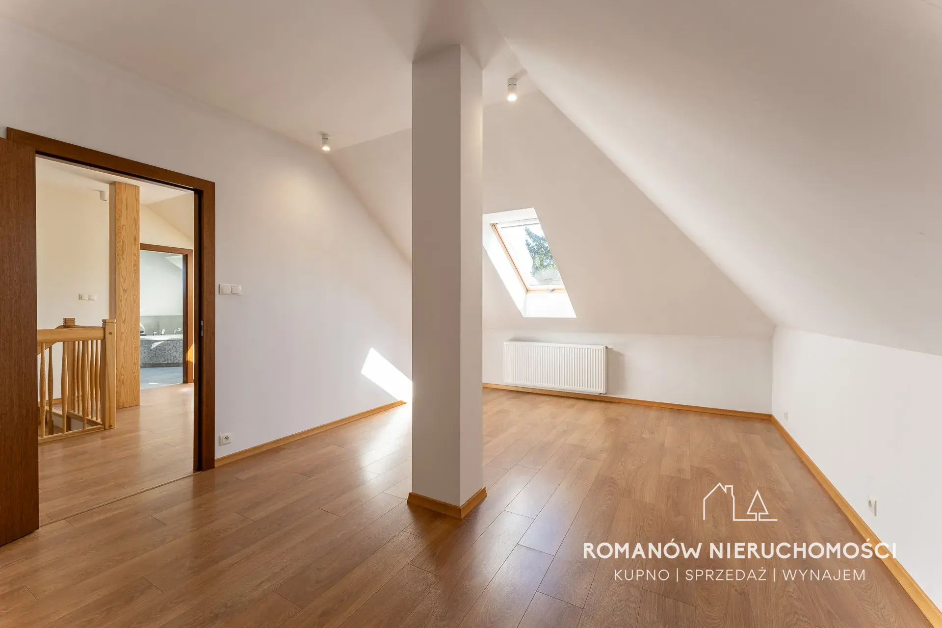 - na piętrze okna drewniane Fakro wyposażone w rolety