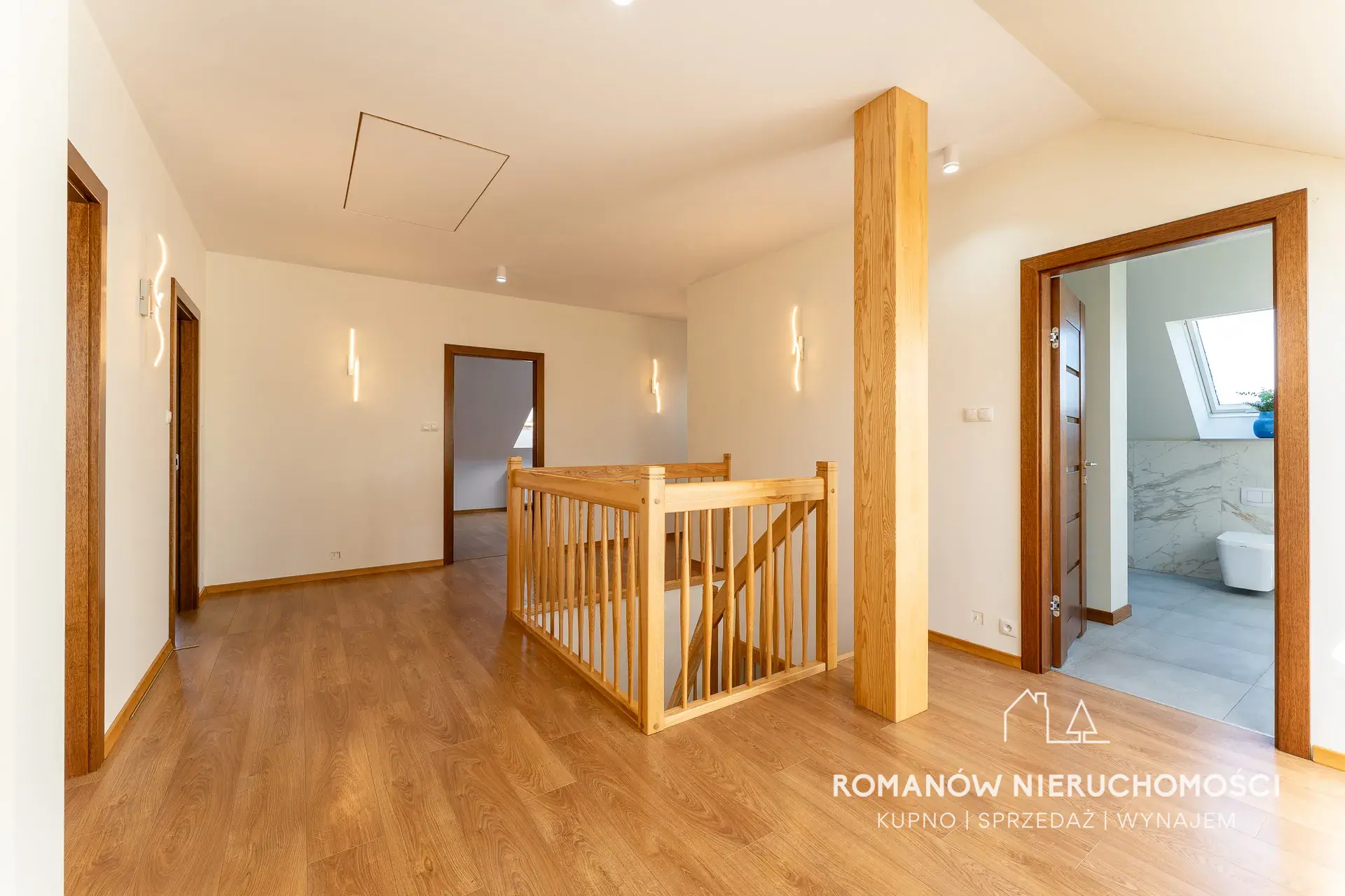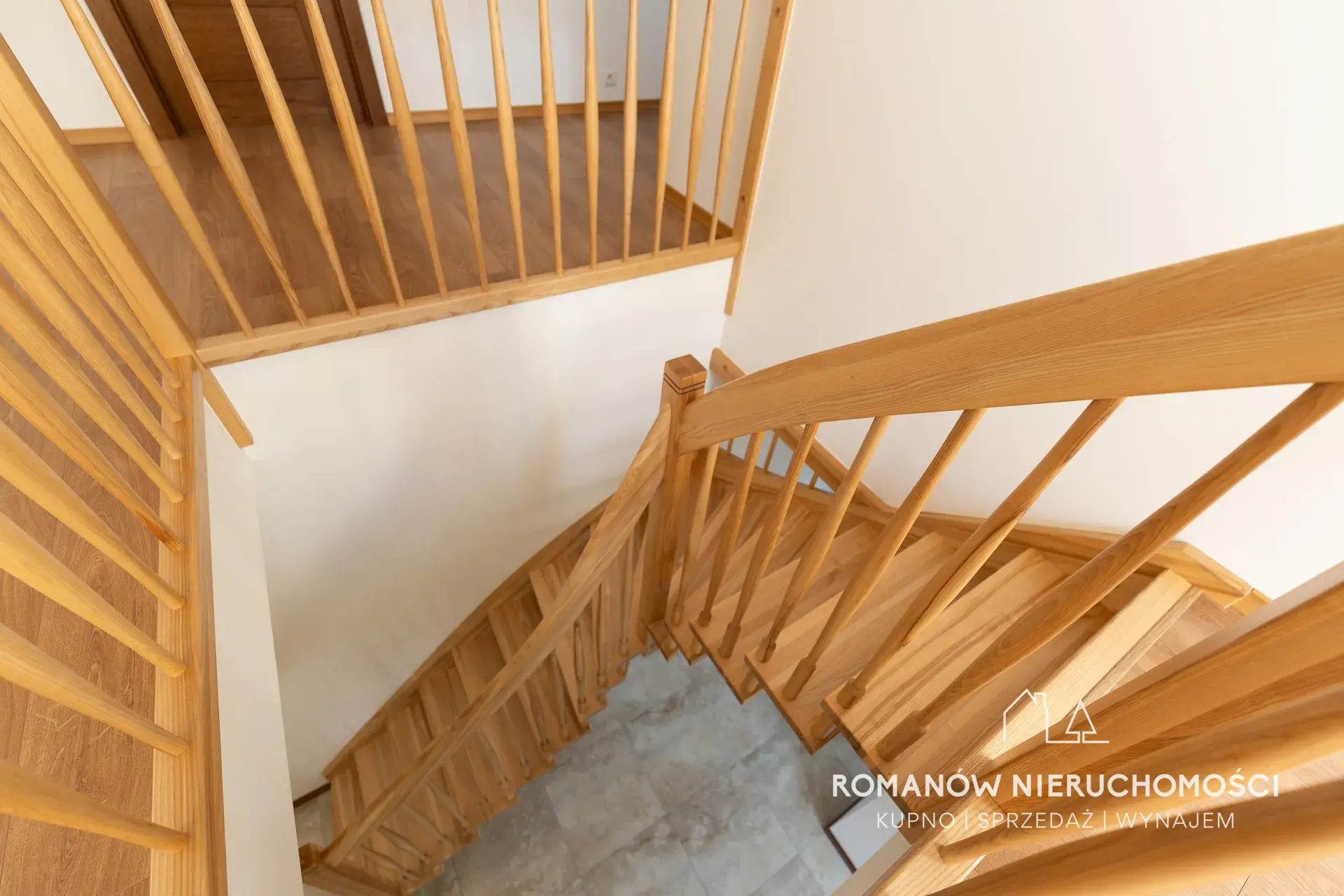 - drewniane podłogi na parterze+gres, na piętrze panele