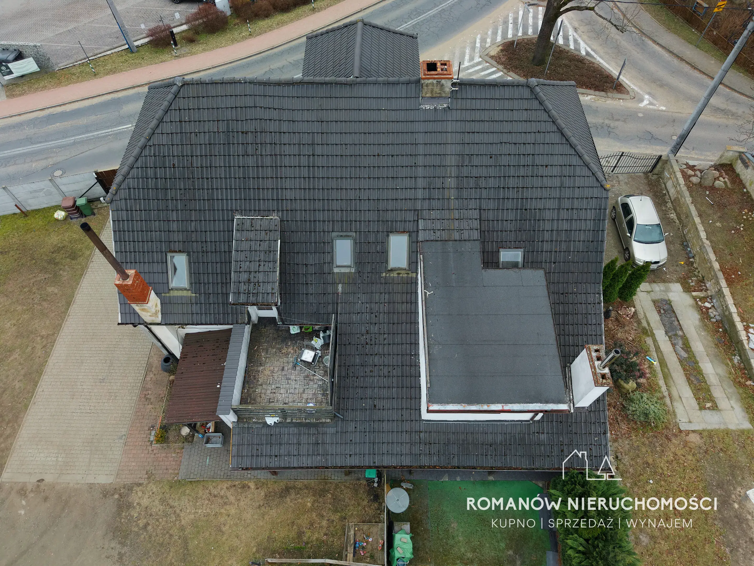 - Dach pokryty dachówką cementową